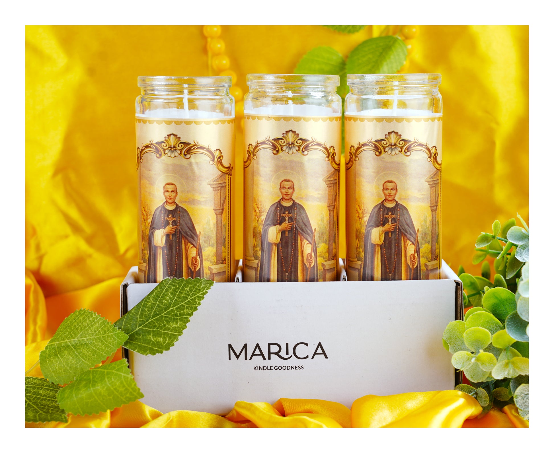 Marica Blessing Devotional Prayer Candle forSan Martín de Porres Great for Sanctury, Vigils, Church, Cemetery, Home, 5.28 Oz (150 g) One wick Unscented White Color Candle, Over 35 Hours of Burn Time